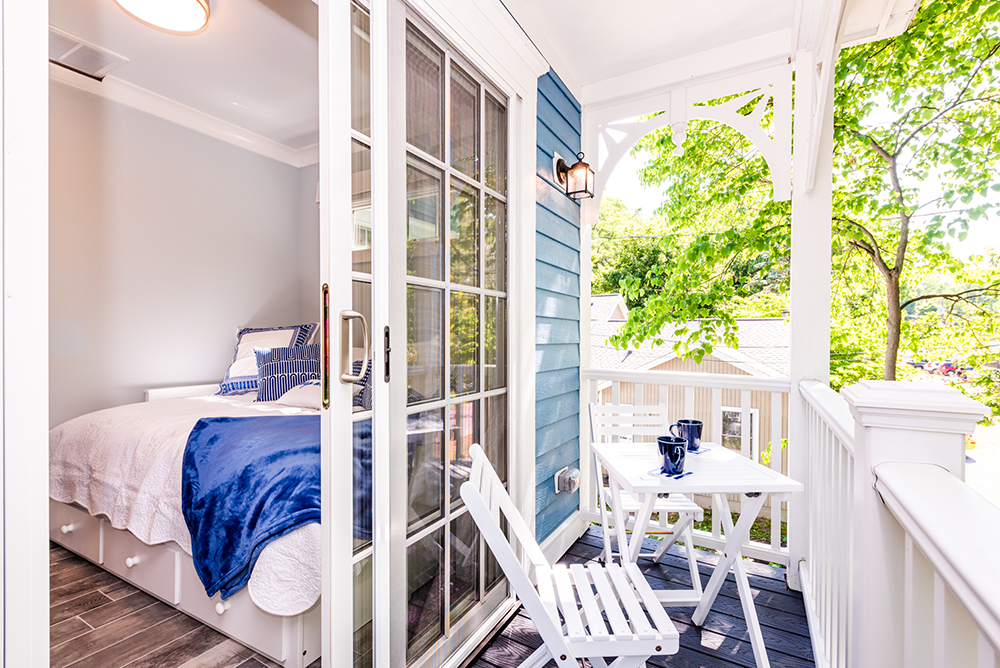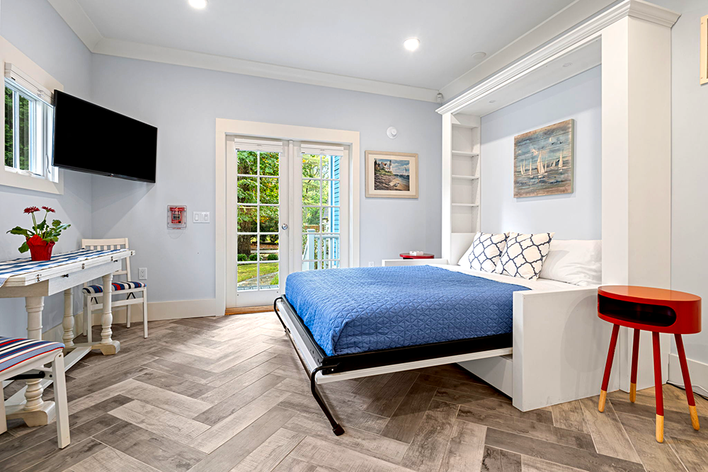 The five separate suites all with private entrances are beautifully appointed with modern amenities and multi-functional furniture. Each suite evokes its own mood, offering individually controlled central heat, air conditioning and a tankless water heater.